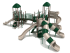 With multiple climbers, slides, and activities, the Galveston play system is no less than a playground paradise for kids. First off, climbers like Snake Climber, Pixel Climber, and Pod Climber are there to challenge the strength of kids and build their upper body muscles. The deck is very spacious and big, so kids can walk between multiple bridges and say hello to their partners or parents while enjoying the overall experience. After getting up on the deck through climbers, kids can choose between a range of slides to come down, including Wave Slide, Spiral Slide, Left Turn Slide, Simple Tube, and Curved Tube Slide. The fun does not stop here! The 270-degree overhead rung ladder adds to the fun and lets kids swirl like monkeys to complete the play-loop structure. No matter what, adventure and thrill are always there in Galveston. It can accommodate up to 94 children at once.