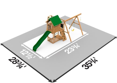 The Summit Silver Play Set includes Giant Scoop Wave Slide, Vertical Climber, Gym Rings, Rigid Swing, Swing, Sand Box Seat, Climbing Rocks, Climbing Rope, 2 pair Play Handles, Chalkboard, Telescope, Monkey Rings, Climbing Rungs.